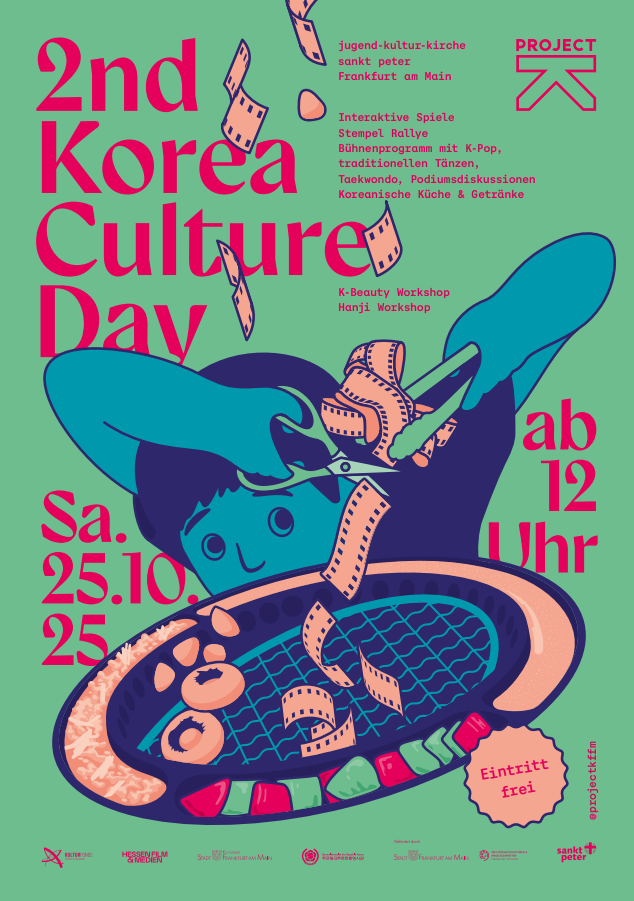 Nach dem großen Erfolg vom Vorjahr geht der Korea Culture Day in die zweite Runde. Am Samstag, den 25. Oktober 2025 ab 12 Uhr in der jugend-kultur-kirche sankt peter, möchten wir mit euch auch in diesem Jahr einen Tag ganz im Zeichen der koreanischen Kultur genießen. Auf euch warten wieder ein abwechslungsreiches Bühnenprogramm, verschiedene interaktive Stände und Workshops, ein Einblick in die koreanische Küche sowie eine Reihe von Info- und Werbeständen: Zahlreiche Möglichkeiten also koreanische Kultur hautnah zu erleben, und das kostenlos und für alle. Kommt gerne vorbei, wir freuen uns auf euch!