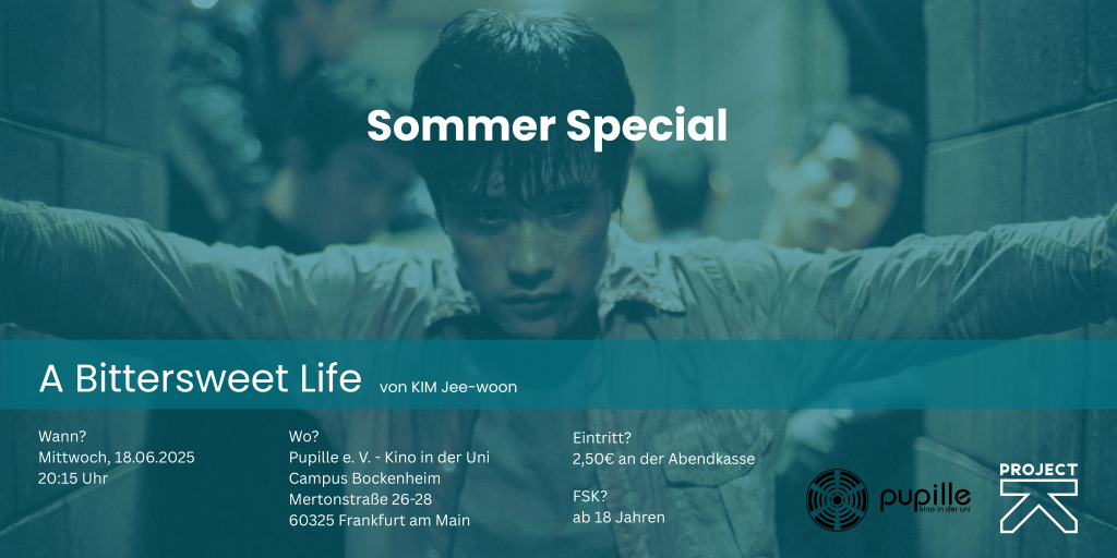 In Kooperation mit dem studentischen Kino Pupille e. V. laden wir Euch zu einem besonderen Filmabend mit dem modernen koreanischen Klassiker A Bittersweet Life von KIM Jee-woon auf den Bockenheimer Uni-Campus am 18. Juni 2025 um 20:15 Uhr ein.